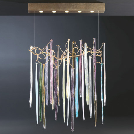 Подвесной светильник из коллекции Waterfall с прямоугольной арматурой золотого цвета. На металлических ветвях разноцветные подвески из муранского стекла. В этой модели присутствуют четыре цвета стекла: «Venturini» -шоколадный, «Beije» - бежевый, «Honey»- медовый, «Clear» - прозрачный. Возможны другие варианты по цвету стекла и покрытию металла. Идеальные пропорции и изящные линии сочетают в себе классические традиции и новаторство нашего времени. Все изделия Serip изготавливаются вручную, имеют органичные формы и цвета, вливаются в интерьер, делая его утонченнее и ярче.<br />