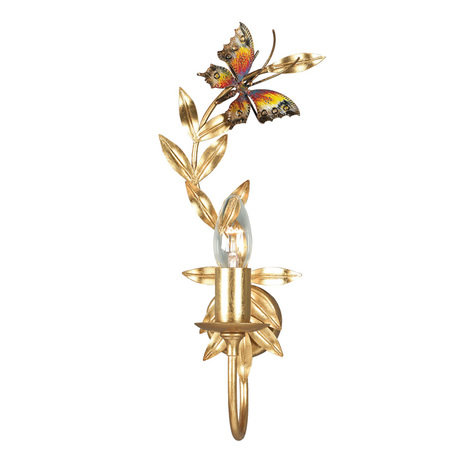 Левостороннее бра, металлическая арматура золотого цвета. Декоративный элемент в виде бабочки на золотых листьях. Дизайн: Karen Lenz.