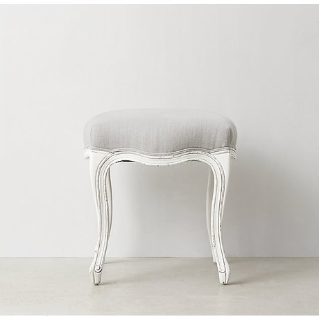 Классический табурет в стиле эпохи Людовика XV украшают элегантные изогнутые резные ножки.