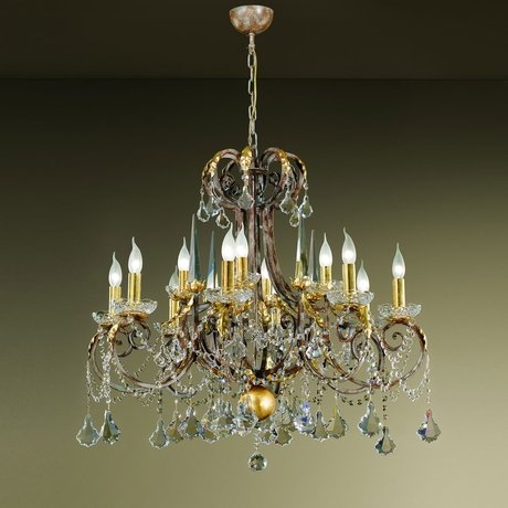 Люстра 12-ти рожковая из коллекции Ottocento на арматуре из кованного металла золотого цвета. Декор: подвески с кристаллами Swarovski и хрустальные чашечки. Высота светильника регулируется за счет звеньев цепи. По индивидуальному заказу возможны различные модификации и варианты отделки.