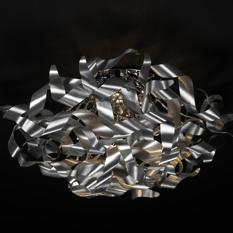 Потолочный светильник из коллекции ST Luce на хромированной арматуре. Плафон состоит из множества мателлических стружек-завитков: матовых и блестящих.