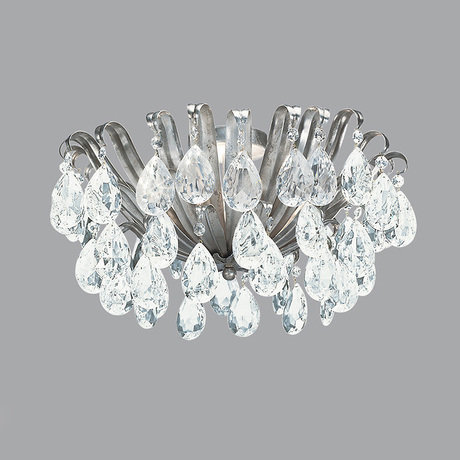 Потолочный светильник из металла серебряного цвета. Светильник выполнен в виде цветка с ниспадающими лепестками. Хрустальные прозрачные подвески на конце лепестков. Дизайн: Karen Lenz.