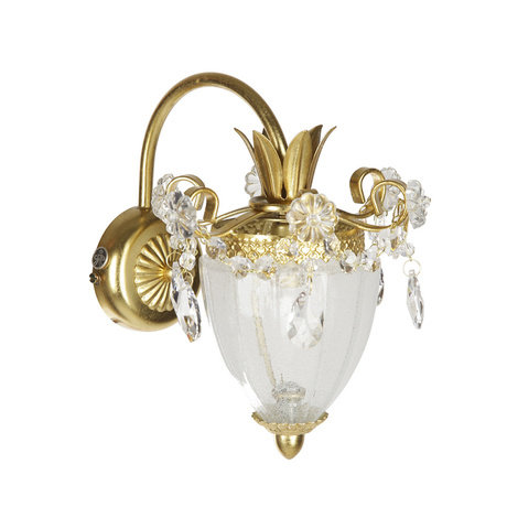 Настенный светильник серии RUGIADA имеет металлическую основу покрытую фольгированным золотом. Элегантный плафон выполнен из муранского стекла ручной выдувки. Светильник декорирован цепочками и подвесками из прозрачного хрусталя. По индивидуальному заказу возможны различные модификации и варианты отделки. Количество лампочек: 1;