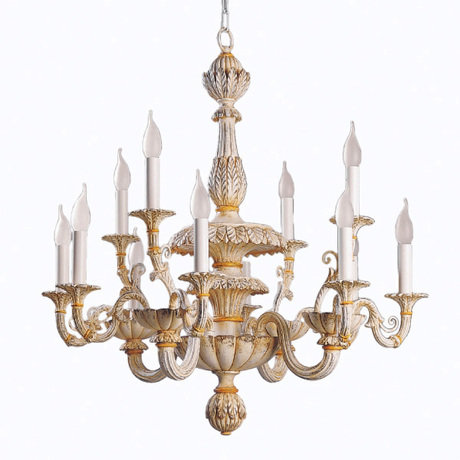 Резная люстра из массива дерева. Цвет арматуры: белый. Выполнена в классическом стиле конца XVIII века. Ручная работа лучших мастеров по резьбе. Возможно около 48 вариантов отделки. Люстру можно регулировать по высоте за счет звеньев цепи. Красота и изысканная роскошь переходят границы времени и пространства. Продукт от итальянского производителя Roberto Giovannini вливается в изменчивые тенденции моды, позволяя контексту обновлять себя и характеризуя его в то же время. Подлинная роскошь без подражателей, всегда актуальная классика для любителей красоты, которая передается из поколения в поколение.