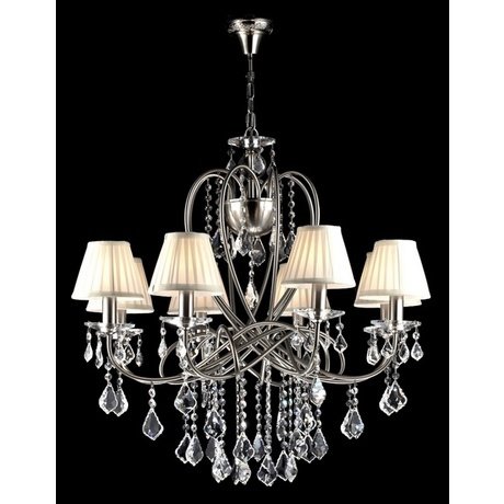 Подвесная люстра Maytoni производства Германия из коллекции Elegant. В конструкции люстры ARM015-08-N используются 8 белых тканевых плафонов с абажуром и металлическая арматура цвета хром. Габаритные размеры люстры 730x750 мм. Дизайн люстры отлично подходит для гостиной. Устанавливается на потолок. Количество ламп 8. Мощность лампы, W60. Общая мощность, W480. Площадь освещения, м2 26.7. Тип цоколя E14. Тип лампочки (основной) Накаливания. Напряжение, V220.