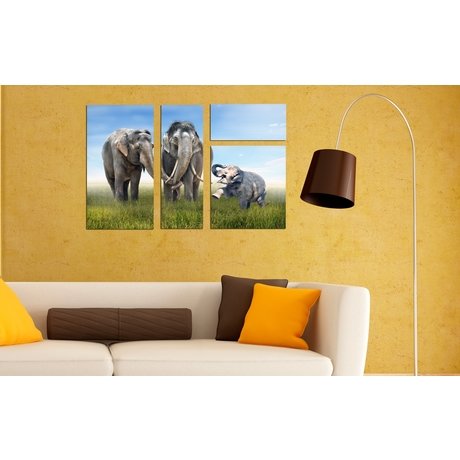 Название: | Интерьерная модульная картина на стену "Семья слонов" |
