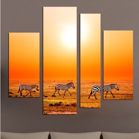 Название: | Стильная полиптих для декора стен: Зебры на прогулке |