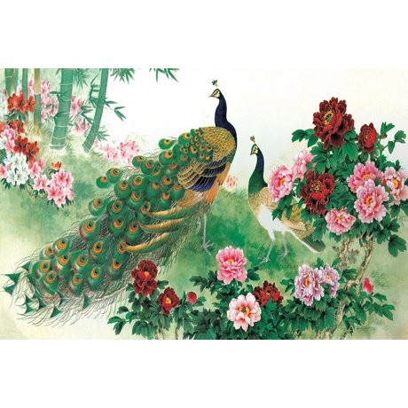 полотно с дивными птицами в окружении нежных