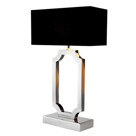 Настольная лампа Table Lamp Sterlington на основании из никелированного металла. Текстильный абажур черного цвета.