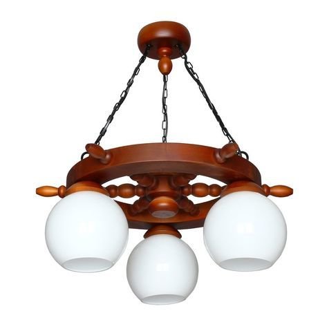 Подвесная люстра Аврора Штурвал. Аврора производства Россия из коллекции Штурвал. В конструкции люстры 10079-3L используются 3 белых стеклянных плафона круглой формы и деревянная арматура цвета коричневый. Габаритные размеры люстры 52x50 см. Дизайн люстры отлично подходит для кафе, ресторанов. Устанавливается на потолок. Количество ламп 3. Мощность лампы, W60. Общая мощность, W180. Площадь освещения, м2 10.0. Тип цоколя E14. Тип лампочки (основной) Накаливания. Напряжение, V230. Степень защиты, IP 20.
