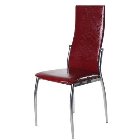 Требуется сборка. Сиденье и спинка бордовая экокожа с тиснением под крокодила, каркас металлический хромированный.