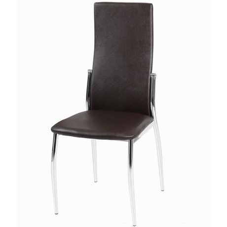Требуется сборка. Сиденье и спинка экокожа насыщенного коричневого цвета, каркас металлический хромированный.