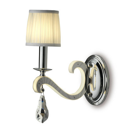 Бра однорожковое Creta на хромированной арматуре с рожком из метакрилата. Текстильный абажур белого цвета. Хрустальный кулон на арматуре.