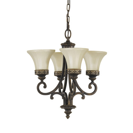 Нестрогая классическая четырехрожковая люстра. Модель изготовлена из металла и белого стекла. Каркас выполнен в коричневой отделке.