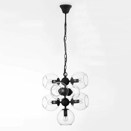 Бренд: Donolux; Коллекция: 111009; Количество ламп: 7; Мощность лампы, W: 40; Общая мощность, W: 280; Площадь освещения, м2: 15.6; Тип лампочки (основной): Накаливания; Тип цоколя: E14; Напряжение, V: 230; Степень защиты, IP: 20; Виды материалов: Стеклянные; Материал арматуры: Металл; Материал плафонов: Стекло; Цвет: Черный; Цвет арматуры: Черный; Цвет плафонов: Прозрачный; Место установки: На потолок.