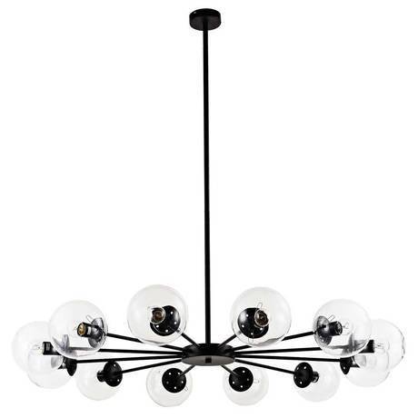 Бренд: Donolux; Коллекция: 111015; Количество ламп: 12; Мощность лампы, W: 40; Общая мощность, W: 480; Площадь освещения, м2: 26.7; Тип лампочки (основной): Накаливания; Тип цоколя: E27; Напряжение, V: 230; Степень защиты, IP: 20; Виды материалов: Стеклянные; Материал арматуры: Металл; Материал плафонов: Стекло; Цвет: Черный; Цвет арматуры: Черный; Цвет плафонов: Прозрачный; Место установки: На потолок.