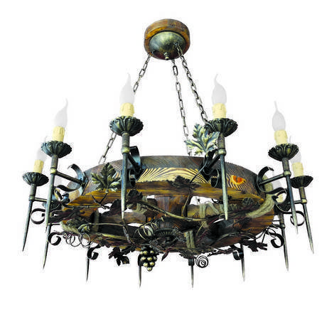 Бренд: Тарьсма; Коллекция: Лоза; Количество ламп: 12; Мощность лампы, W: 40; Общая мощность, W: 480; Площадь освещения, м2: 26.7; Тип лампочки (основной): Накаливания; Тип цоколя: E14; Напряжение, V: 230; Степень защиты, IP: 20; Виды материалов: Деревянные; Материал арматуры: Металл; Цвет: Коричневый; Цвет арматуры: Бронза; Место установки: На потолок