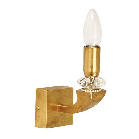 Арматура бра из металла с золотым фольгированием. Под патроном хрустальный диск. Можно использовать абажуры на лампочку. Количество лампочек: 1. Мощность: 1 x 42 Вт. Тип лампы: Накаливания, E14.