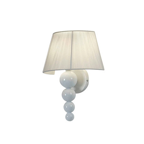 Настенный светильник на металлической арматуре. Текстильный абажур белого цвета. Декоративные шары из стекла на арматуре. Цвет светильника: белый. Количество лампочек: 1. Мощность: 1 x 4 Вт. Тип лампы: LED.
