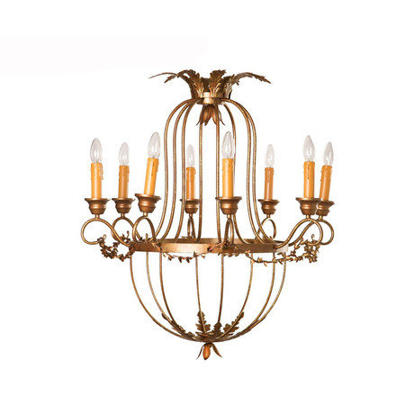 Неповторимая атмосфера тепла и уюта проникает в дом с появлением кованых изделий из металла. Так, кованая люстра Дюпон идеально вписывается в интерьер практически любой стилевой направленности. Легкий винтажный эффект в сочетании с ажурными формами и растительными мотивами в декоре образуют гармоничный и завершенный образ. Совершенно особый шарм средневековых замков, чарующая игра света и тени в отблесках горящих свечей - манящая атмосфера пронизывают пространство, наполняя его таинством времени. Неспроста кованые изделия во все времена считались признаком хорошего тона и маркером благосостояния. Имитируя образ старинного подсвечника с чуть оплавленным воском - эта люстра окутывает Ваш дом теплом и гармонией. Современная интерпретация классической люстры определяет сдержанное и одновременно нарядное настроение люстры в стиле модерн. Лампы E14 8*40W.