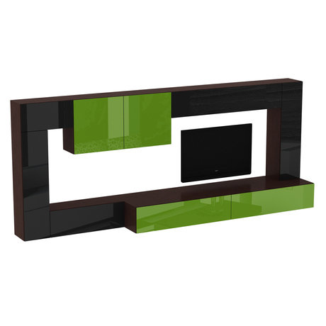 Композиция для гостиной. Все модули коллекции Сubo крепятся к стене. Двери шкафов и выдвижные ящики открываются по принципу «нажал-открыл». Глубина шкафов: 37 см.