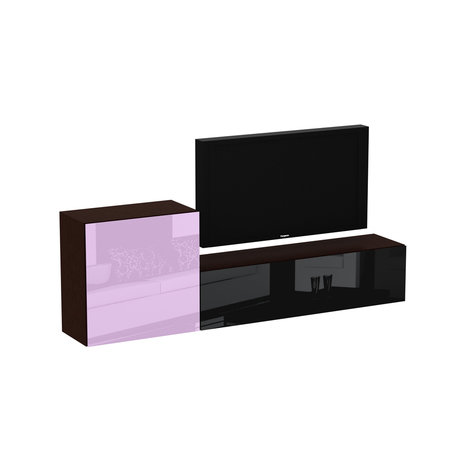 Композиция для гостиной. Все модули коллекции Сubo крепятся к стене. Двери шкафов и выдвижные ящики открываются по принципу «нажал-открыл».