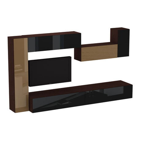 Композиция для гостиной. Все модули коллекции Сubo крепятся к стене. Двери шкафов и выдвижные ящики открываются по принципу «нажал-открыл». Глубина шкафов: 37 см.