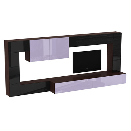 Композиция для гостиной. Все модули коллекции Сubo крепятся к стене. Двери шкафов и выдвижные ящики открываются по принципу «нажал-открыл». Глубина шкафов: 37 см.