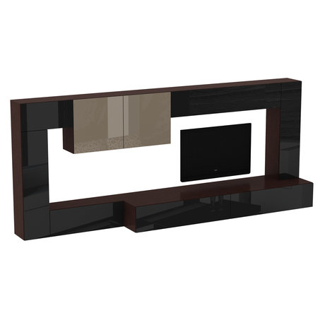 Композиция для гостиной. Все модули коллекции Сubo крепятся к стене. Двери шкафов и выдвижные ящики открываются по принципу «нажал-открыл». Глубина шкафов: 37 см.