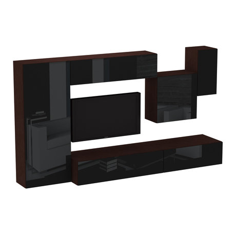 Композиция для гостиной. Все модули коллекции Сubo крепятся к стене. Двери шкафов и выдвижные ящики открываются по принципу «нажал-открыл». Глубина шкафов: 37 см.