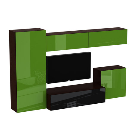 Композиция для гостиной. Все модули коллекции Сubo крепятся к стене. Двери шкафов и выдвижные ящики открываются по принципу «нажал-открыл». Глубина шкафов:372 мм.
