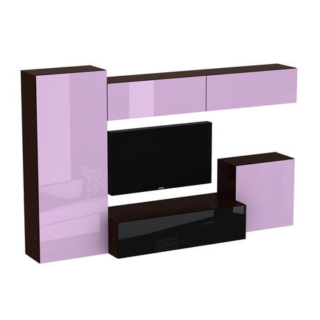 Композиция для гостиной. Все модули коллекции Сubo крепятся к стене. Двери шкафов и выдвижные ящики открываются по принципу «нажал-открыл». Глубина шкафов:372 мм.