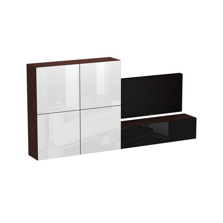 Композиция для гостиной. Все модули коллекции Сubo крепятся к стене. Двери шкафов и выдвижные ящики открываются по принципу «нажал-открыл».
