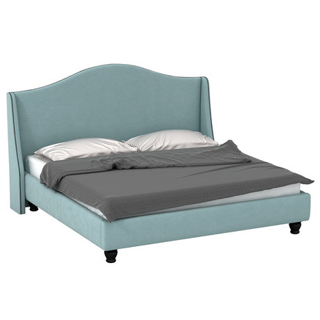 Двуспальная кровать с высокой спинкой и декоративными элементами . Спинка декорирована молдингом. Кровать установлена на фигурные деревянные ножки. Выполняется в трёх вариантах размеров спального места: 200х200 мм, 180х200 мм и 160х200 мм. Основание: металлическое с эластичными латами из фанеры.