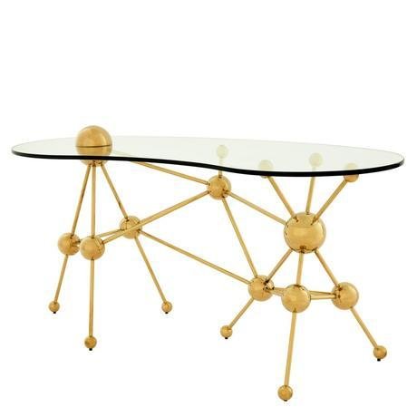Бренд: Eichholtz Журнальный столик. Размер см: 41х140х85. Цвет: Прозрачный/Золотой. Материал: Стекло/Нержавеющая сталь.