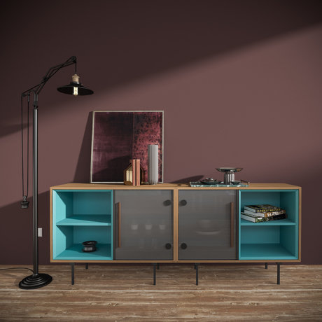Комбинацию 2- х модулей C из коллекции Tube возможно использовать, как самостоятельно, так и в сочетании с другими модулями из этой коллекции. Комбинация оснащена удобными секциями для хранения, включая открытые ниши, полочки и секции с распашными стеклянными дверцами. Материалы: шпон дуба, мдф, металл, эмаль бирюзовая, стекло, лак.