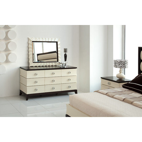 Комод выполнен в стиле Ар деко. Отделка: глянцевый серо-бежевый лак; шпон: цвета темного ореха .