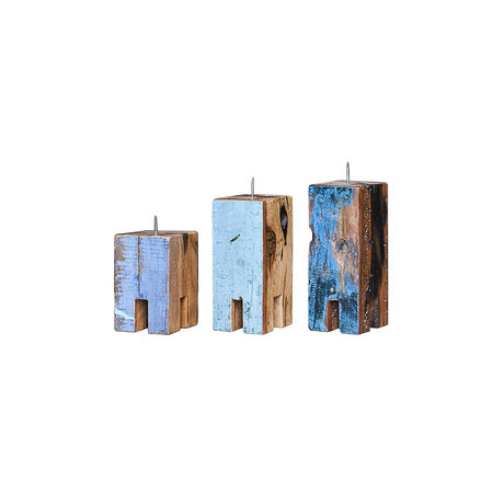 Набор из 3х подсвечников, выполненных из массива древесины старого рыбацкого судна с сохранением оригинальной многослойной окраски.