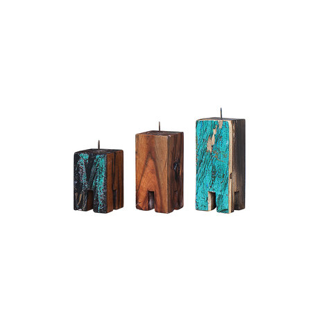 Набор из 3х подсвечников, выполненных из массива древесины старого рыбацкого судна с сохранением оригинальной многослойной окраски.