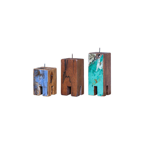 Набор из 3х подсвечников, выполненных из массива древесины старого рыбацкого судна с сохранением оригинальной многослойной окраски.