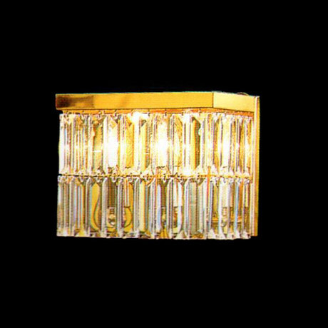 Настенный светильник выполнен из металла, покрытого золотом 24К. Светильник декорирован ниспадающими прозрачными элементами из хрусталя. Количество лампочек: 2.