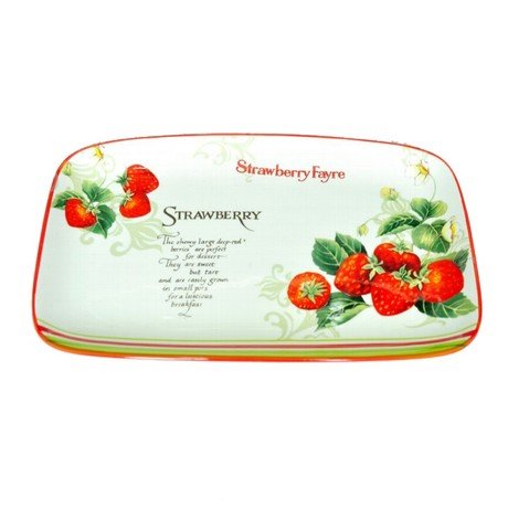 Сервировка стола, как на крупный банкет, так и на небольшой праздник подразумевает обязательное использование блюд для подачи закусок, салатов, десертов. Оригинальное прямоугольное блюдо с красивым рисунком земляники станет украшением праздничной сервировки.