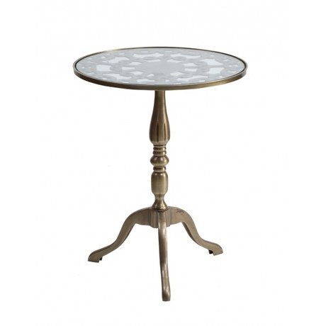 Элегантный журнальный стол с изящным фигурным основанием из железа, выполненным в бежевом цвете, и круглой стеклянной столешницей гармонично впишется в интерьер в стиле прованс.