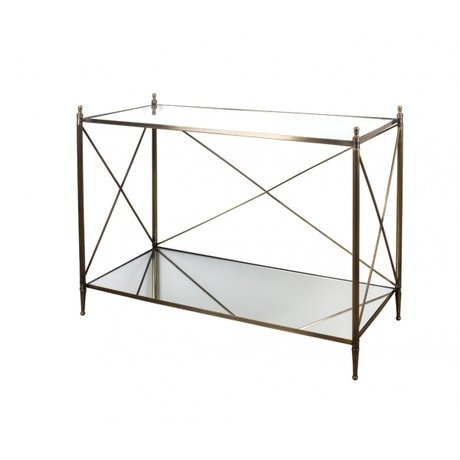 Изысканный и элегантный журнальный стол с металлическим каркасом и прямоугольной стеклянной столешницей гармонично впишется в интерьер любой комнаты в стиле арт-деко. Расположенная под столешницей и полностью повторяющая ее форму полка делает данный предмет мебели более удобным и функциональным.
