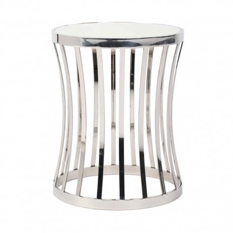 Стильный журнальный стол с оригинальным основанием из полированной стали и круглой мраморной столешницей гармонично впишется в современный интерьер, служа подставкой для рамок с фотографиями, цветов или элементов декора.