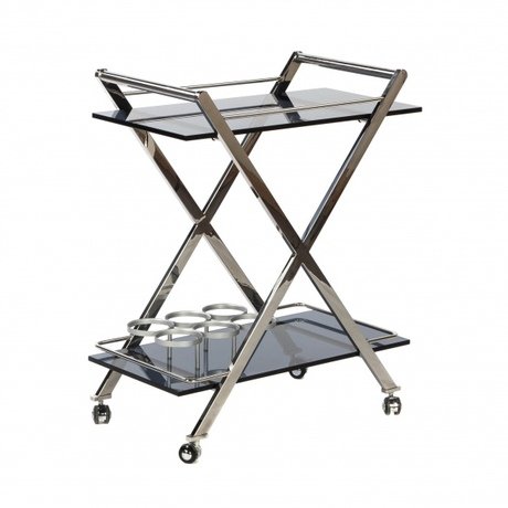 Стильный журнальный стол с основанием из полированной стали, стеклянной столешницей и расположенной внизу дополнительной полкой, полностью повторяющей ее форму. Основной особенностью данного изделия являются удобные колесики, благодаря чему стол можно без труда перемещать в любое место.