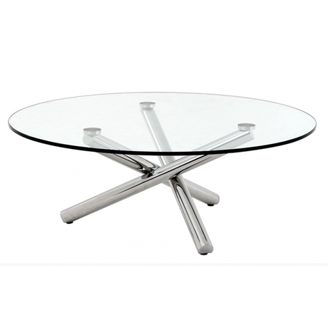 Стол "Корсика" состоит из перекрещенных между собой хромированных ножек, на которых расположена стеклянная столешница круглой формы. Благодаря такому оригинальному дизайну, предметы, расположенные на столе "Корсика", дают визуальный эффект легкости и левитации.