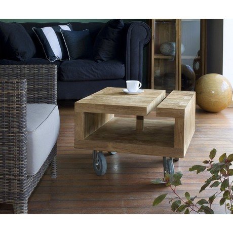 Квадратный кофейный стол из массива тика на колесах. Колеса оборудованы стопором.