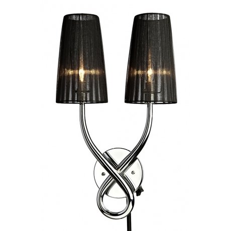 Эти бра будут отличным дополнением для красивого современного интерьера и создадут атмосферу романтики, ведь они испускают приглушенный мягкий свет, настраивающий на отдых и неторопливый разговор по душам. Бра имеют элегантную форму, основание выполнено из хромированного металла, а два вытянутых абажура сделаны из ткани черного цвета.